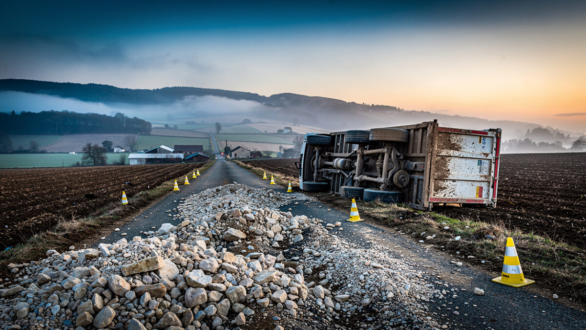 Des accidents impliquant des poids lourds surviennent régulièrement dans ce territoire rural et montagneux. En janvier 2025, un camion avec remorque s’était renversé à Borne, en Haute-Loire, après que des planches gelées avaient glissé du chargement, selon Le Veil. Des accidents graves impliquant des engins agricoles ou de chantier surviennent également dans d’autres départements dans des contextes similaires.