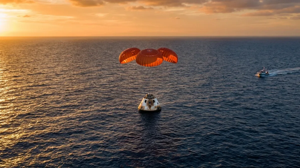Après dix jours dans l'espace et un survol de la face cachée de la Lune, l'équipage a amerri dans le Pacifique à la minute près. Une première depuis 1972.