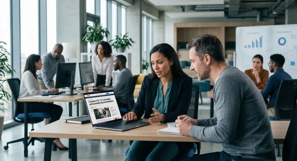 Selon une étude de McKinsey Global Institute, 27 % des tâches quotidiennes des travailleurs français pourraient être confiées à une intelligence artificielle. Cette révolution technologique, qui s’accélère depuis le lancement de ChatGPT fin 2022, suscite autant d’espoirs que d’inquiétudes chez les salariés. Entre crainte du remplacement et volonté de maîtriser ces nouveaux outils, la formation à l’IA devient un enjeu majeur pour les entreprises et les professionnels.