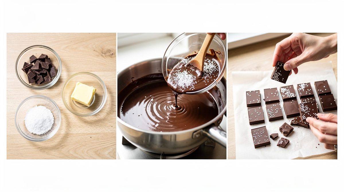 Réaliser du chocolat pétillant à la maison est étonnamment simple et ne nécessite que deux ingrédients : du chocolat de qualité et du sucre pétillant disponible dans les magasins de pâtisserie. Faites fondre 200g de chocolat au bain-marie à feu doux en remuant régulièrement. Une fois fondu, retirez du feu et laissez refroidir 15 minutes jusqu'à ce que le chocolat soit tiède. Incorporez délicatement 2 à 3 cuillères à soupe de sucre pétillant en mélangeant doucement pour ne pas faire exploser les bulles. Versez immédiatement le mélange sur une plaque recouverte de papier sulfurisé ou dans des moules en silicone. Placez au réfrigérateur pendant au moins 2 heures. Vous pouvez aussi créer des chocolats fourrés en remplissant des moules de chocolat, ajoutant du sucre pétillant au centre, puis refermant avec une couche de chocolat.