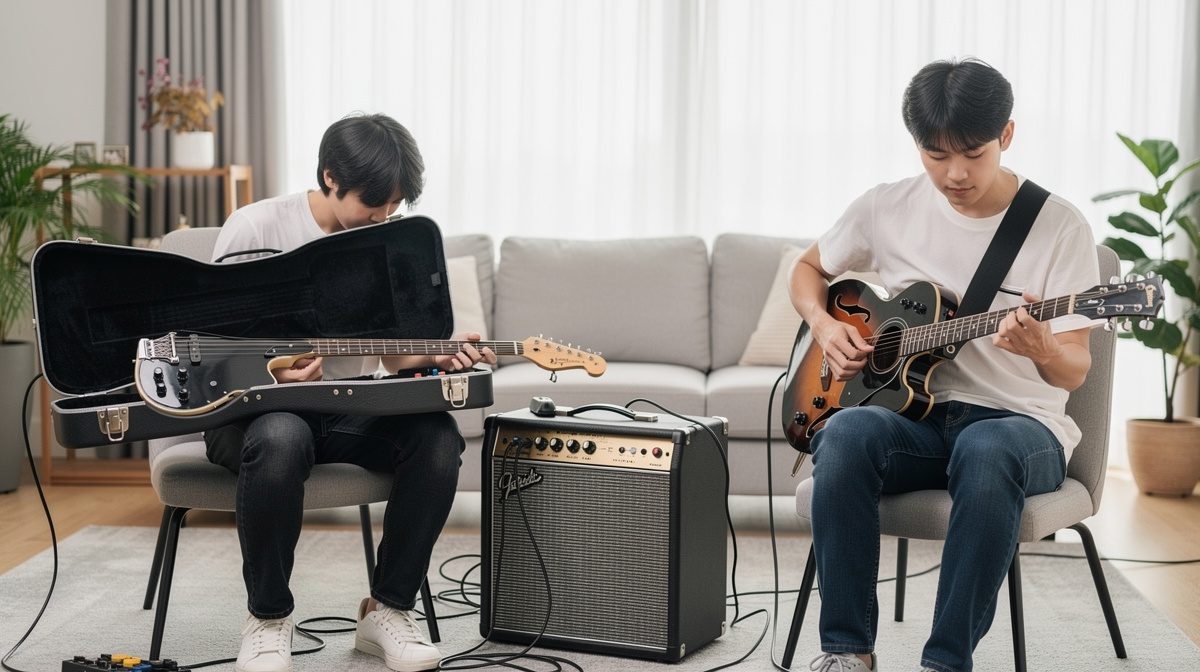 La première étape consiste à s'équiper correctement. Pour débuter, optez pour une guitare électrique d'entrée de gamme comme une Yamaha Pacifica ou une Squier Stratocaster, reconnues pour leur excellent rapport qualité-prix. Contrairement à la guitare acoustique, l'électrique nécessite un amplificateur : un petit ampli de 15 à 30 watts suffit amplement pour s'entraîner chez soi. Vous aurez également besoin d'un câble jack, d'un accordeur électronique (indispensable pour produire des notes justes), de médiators de différentes épaisseurs et d'un métronome. Un casque peut être utile pour pratiquer sans déranger votre entourage. Le budget total pour un équipement débutant se situe entre 200 et 400 euros. N'investissez pas trop au départ : vous changerez probablement d'instrument après 1 à 2 ans de pratique.