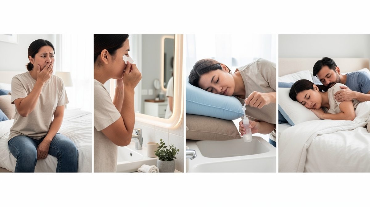 L'obstruction nasale ou naso-pharyngée est responsable de nombreux ronflements. Elle peut être due à une malformation anatomique comme une déviation de la cloison nasale, une congestion liée aux allergies, ou simplement à un rhume. Pour dégager vos narines, prenez une douche chaude avant de dormir si vous avez le nez bouché. Utilisez des solutions salines ou des sprays nasaux pour nettoyer vos voies nasales. Si vous souffrez d'allergies, passez l'aspirateur régulièrement sur le matelas et évitez que vos animaux de compagnie montent sur votre lit. Le traitement précoce des pathologies ORL est essentiel : soigner une rhinite chronique ou corriger une déviation de cloison nasale peut prévenir l'évolution vers un ronflement chronique.