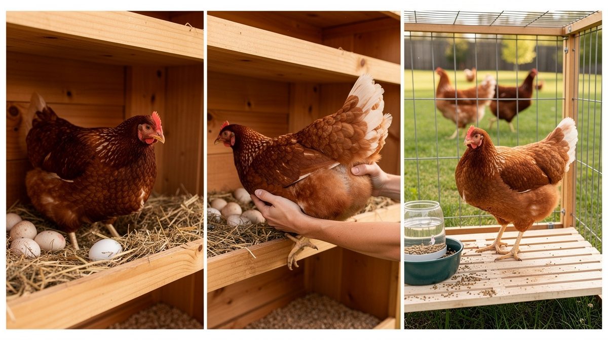 Pour arrêter une poule de couver, isolez-la dans un enclos séparé pendant au moins 48 heures, loin du poulailler et sans accès au nid. Retirez tous les œufs et surveillez qu'elle se lève et marche avant de la réintégrer.