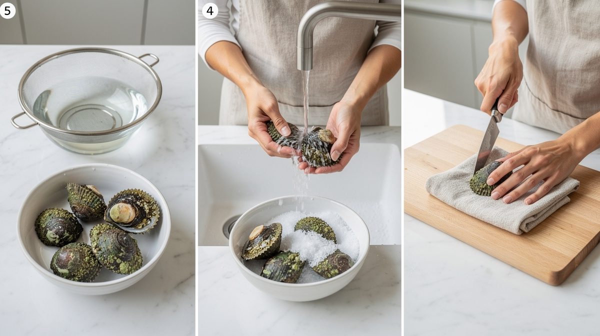 Pour attendrir les berniques, la méthode traditionnelle consiste à enfermer les chairs cuites dans un linge solide et à les frapper vigoureusement pendant 5 minutes sur une surface dure ou avec un maillet. Cette technique mécanique brise les fibres musculaires et rend la chair moins coriace.