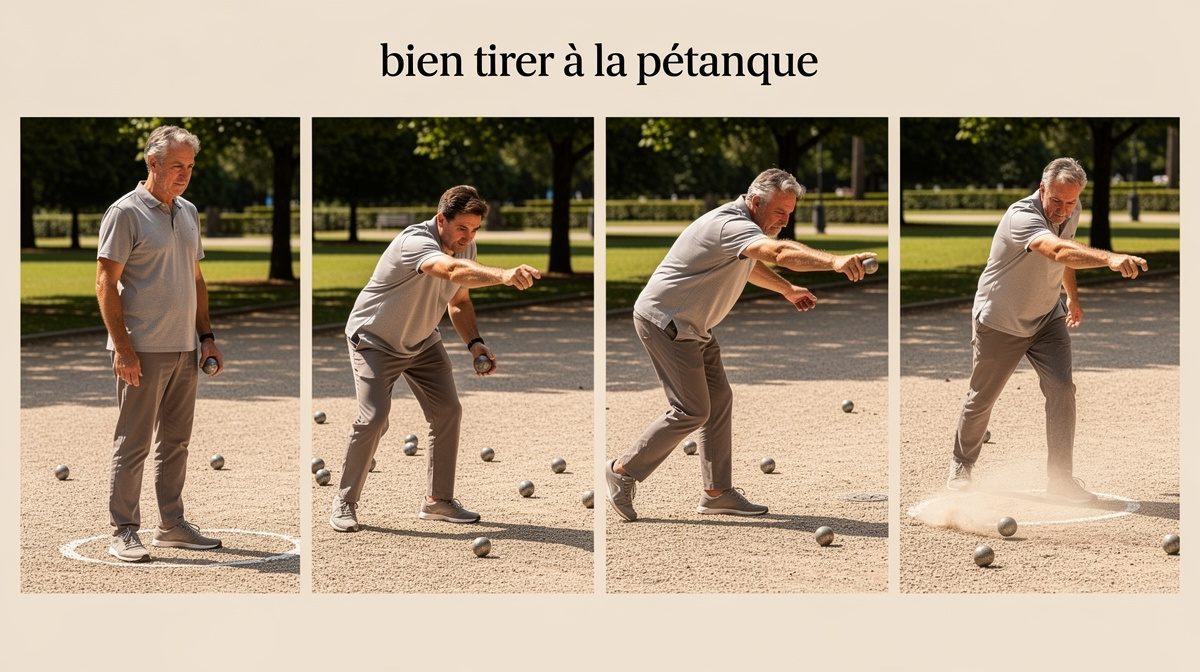 Pour bien tirer à la pétanque, adoptez une posture debout stable, tenez la boule centrée dans la paume sans crispation, effectuez un mouvement de balancier naturel et lâchez la boule dans le prolongement du bras sans freiner votre geste.