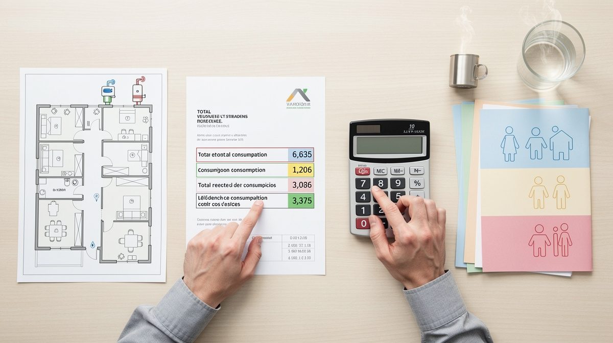 Une fois tous les éléments rassemblés, additionnez les trois composantes : prix de l'eau froide + coût énergétique du réchauffement + frais d'entretien. Reprenons l'exemple complet : eau froide à 4,34€/m³ + chauffage à 7,80€/m³ + entretien à 2,20€/m³ = 14,34€/m³. Ce calcul vous donne le coût réel d'un mètre cube d'eau chaude dans votre copropriété. Ce tarif peut varier considérablement d'un immeuble à l'autre selon le type d'énergie utilisée (gaz, électricité, réseau de chaleur), la performance de la chaudière et l'isolation des canalisations. Le décret du 23 avril 2012 impose aux copropriétés équipées de chauffage collectif d'installer des appareils de mesure individuelle pour une facturation plus juste basée sur la consommation réelle.