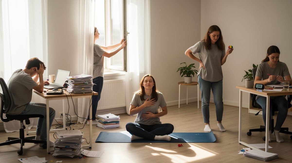 Les exercices de respiration profonde aident à calmer le système nerveux en situation d'hyperactivation. Guidez la personne vers une respiration abdominale lente : inspirer par le nez en comptant jusqu'à 4, retenir 2 secondes, expirer par la bouche en comptant jusqu'à 6. Cette technique active le système nerveux parasympathique qui favorise l'apaisement. Les approches d'ancrage corporel sont également efficaces : si la personne le tolère, vous pouvez la bloquer doucement dans vos bras pour créer une contention rassurante (technique recommandée par HyperSupers TDAH France). Les couvertures lestées exercent une pression uniforme qui a un effet calmant sur le système nerveux, particulièrement efficace en cas de surcharge sensorielle. D'autres peuvent préférer un contact avec un objet sensoriel (balle anti-stress, coussin lesté) ou même aller se défouler sur un punching-ball pour libérer la tension physique.