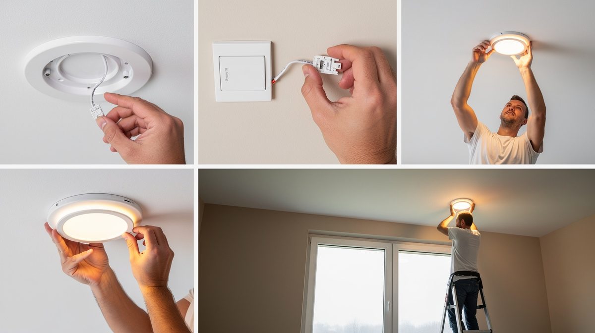 Munissez-vous de votre nouveau spot LED en vérifiant la compatibilité du diamètre d'encastrement avec le trou existant. Si nécessaire, agrandissez le trou avec une scie cloche adaptée. Ouvrez le capot du transformateur LED (driver) du nouveau spot et raccordez-le à votre installation électrique en respectant scrupuleusement les branchements : phase, neutre et terre si applicable. Selon Wekiwi, les spots LED consomment jusqu'à 80% d'électricité en moins que les ampoules traditionnelles avec un rendement de 80 à 100 lumens par watt. Une fois les raccords effectués, refermez le capot du transformateur. Soulevez les pattes de fixation à ressort du nouveau spot vers le haut, placez-le dans le trou prévu dans le plafond et encastrez-le progressivement. Les pattes se rabattent automatiquement et plaquent le spot contre le plafond. Rétablissez l'alimentation électrique et testez le fonctionnement.