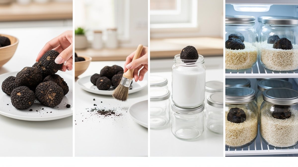 Avant toute conservation, le nettoyage est une étape cruciale. Utilisez une brosse souple, comme une brosse à dents neuve, pour brosser délicatement la truffe à sec et retirer la terre sans endommager sa peau parfumée. Si nécessaire, passez-la rapidement sous un filet d'eau froide juste avant utilisation. Séchez-la soigneusement avec du papier absorbant. Retirez toute partie abîmée avec un petit couteau. Ce nettoyage minutieux limite les risques de moisissure et de développement bactérien durant la conservation. Attention : ne nettoyez les truffes cavées (avec leur terre) qu'au moment de les cuisiner pour préserver leur qualité plus longtemps.