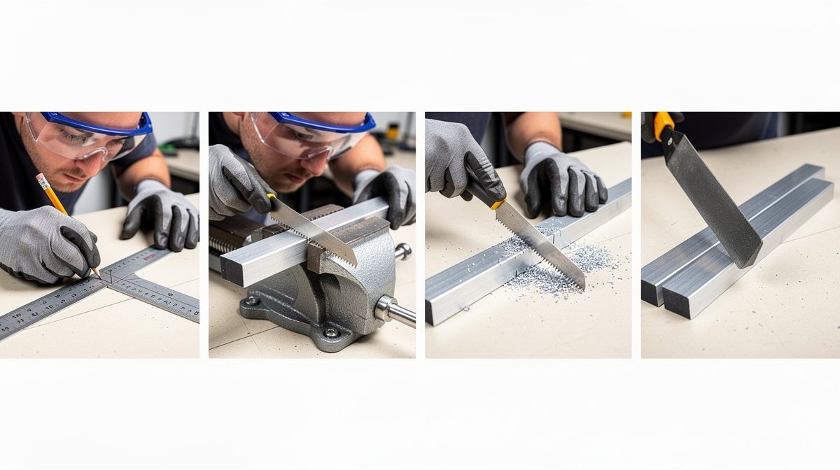 Une préparation minutieuse garantit une découpe précise. Nettoyez d'abord la surface de l'aluminium pour éliminer toute trace de graisse ou de poussière. Tracez ensuite votre ligne de coupe avec un crayon gras ou un marqueur permanent, en utilisant une règle métallique pour les lignes droites. Fixez fermement la pièce sur votre plan de travail avec des serre-joints robustes ou un étau, en veillant à ne pas trop serrer pour éviter de déformer le matériau. Pour protéger la surface de l'aluminium des marques de serrage, placez un tissu ou des cales en bois entre l'étau et la pièce. Assurez-vous que la zone de coupe dépasse légèrement du plan de travail pour permettre à la lame de passer sans toucher la surface. Cette étape est essentielle car l'aluminium, léger et flexible, peut vibrer ou bouger pendant la coupe, provoquant des défauts.