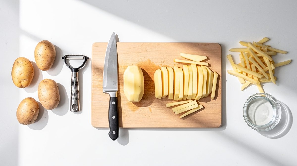- Coupez vos frites de taille égale pour garantir une cuisson uniforme et éviter que certaines ne brûlent pendant que d'autres restent crues