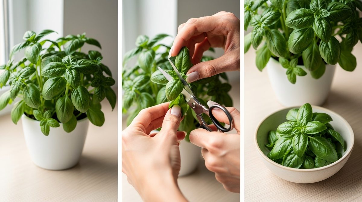 Pour les petites récoltes quotidiennes, vous pouvez cueillir quelques feuilles individuellement en les tirant doucement à leur base. Pour les feuilles les plus importantes ou pour stimuler la croissance, il est préférable de couper directement la tige complète juste au-dessus d'une paire de feuilles. Cette méthode favorise la naissance de nouvelles pousses et rend le plant plus touffu.