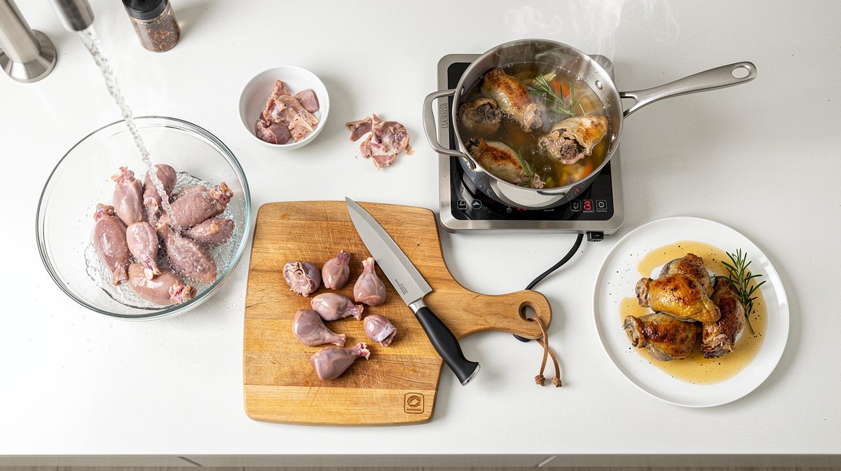 La préparation constitue l'étape fondamentale pour obtenir des gésiers tendres. Commencez par rincer soigneusement les gésiers sous l'eau froide pour éliminer toute impureté. Si vos gésiers ne sont pas préparés, retirez la poche interne et les membranes blanches épaisses qui peuvent rendre la texture désagréable. Cette peau s'épluche avec un couteau bien aiguisé, même si c'est assez laborieux. Certains cuisiniers font tremper les gésiers dans de l'eau chaude salée pendant 30 minutes pour faciliter l'épluchage. Une fois nettoyés, séchez-les soigneusement avec du papier absorbant. Cette étape est cruciale car elle détermine la qualité finale de votre plat.