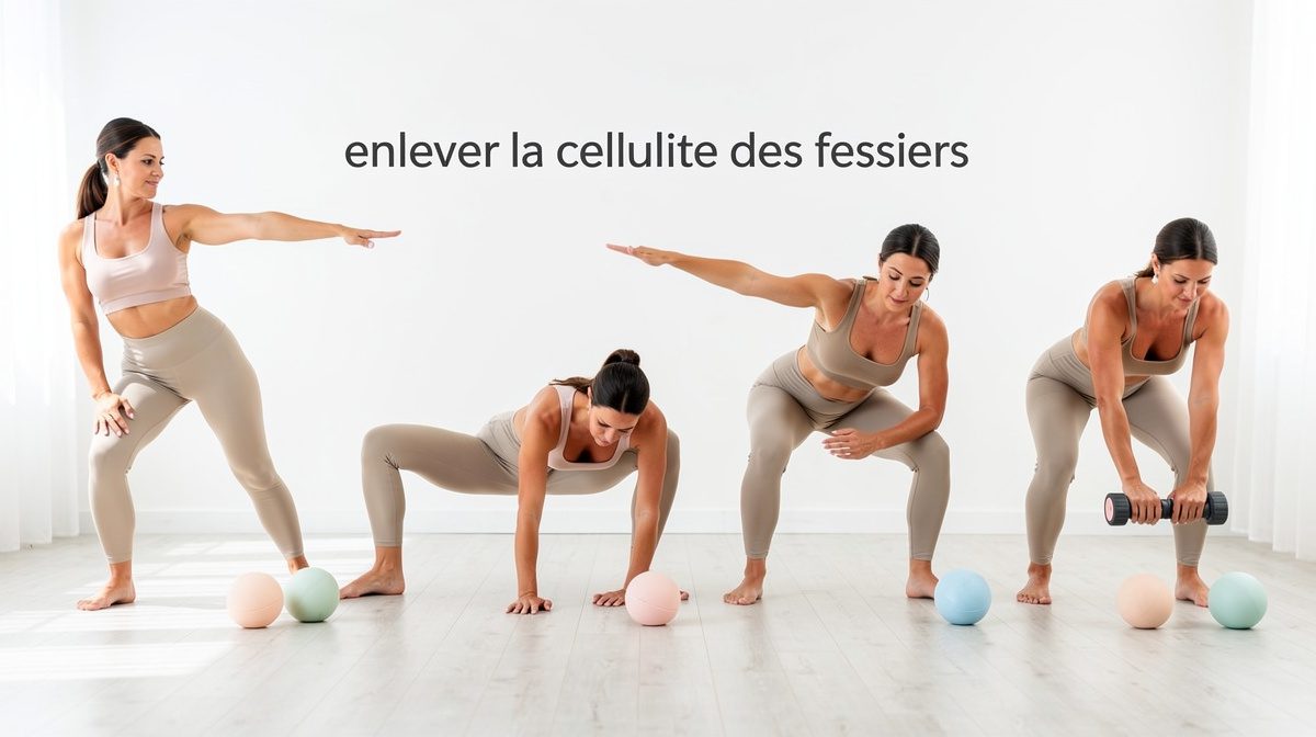 Pour enlever la cellulite des fessiers, combinez exercices de renforcement musculaire (squats, fentes, ponts), alimentation anti-inflammatoire riche en fibres et pauvre en sel, massages palper-rouler quotidiens et hydratation d'au moins 1,5 litre d'eau par jour. Les résultats apparaissent après 3 à 4 semaines de pratique régulière.