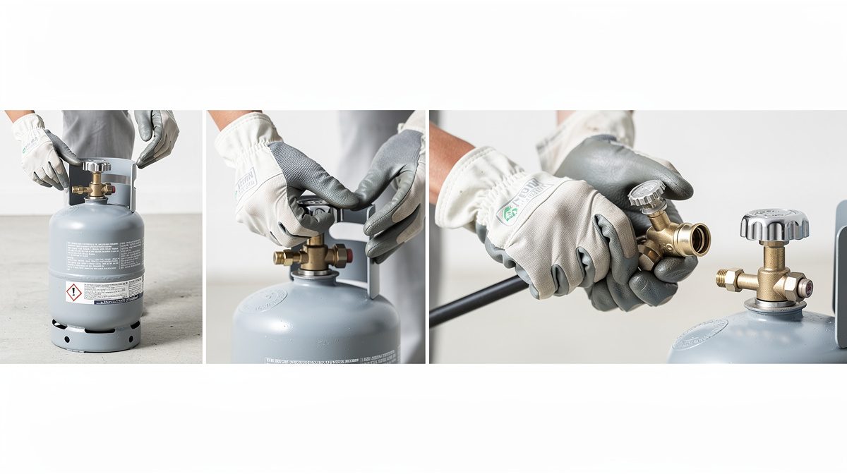 - Portez des gants de protection pour éviter tout contact direct avec le gaz et placez un tapis de protection sous la bouteille pour éviter d'endommager le sol