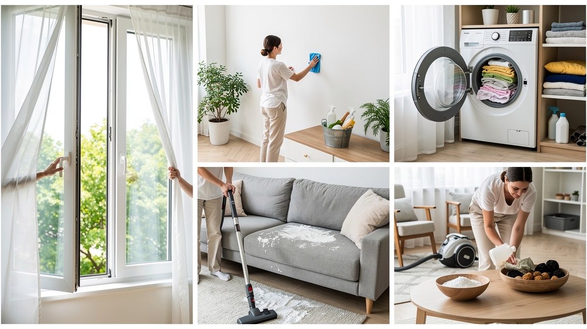 - Combinez plusieurs méthodes simultanément pour une efficacité maximale : aération, nettoyage et absorption des odeurs
