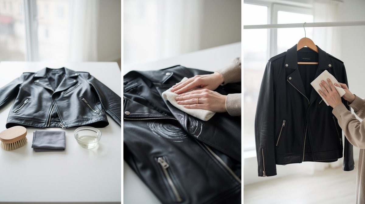 Le nettoyage régulier est essentiel pour éliminer la poussière, les impuretés et le sébum qui bouchent les pores du cuir. Selon Alta Cuir, si vous portez votre veste régulièrement, nettoyez-la tous les trois mois, et au minimum en début et fin de saison. Commencez par dépoussiérer avec une brosse douce en poils naturels ou un chiffon sec. Pour le nettoyage en profondeur, utilisez un savon spécial cuir, un savon glycériné ou un lait nettoyant adapté. Appliquez le produit sur un chiffon doux légèrement humide, puis frottez délicatement par mouvements circulaires sans trop appuyer. Un coton humide avec du savon doux reste la meilleure solution pour les cuirs lisses. Laissez ensuite sécher à l'air libre sur un cintre, jamais près d'une source de chaleur.
