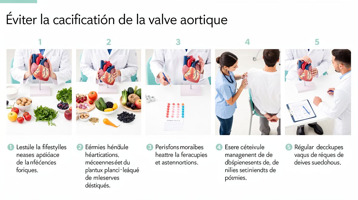 Pour prévenir la calcification de la valve aortique, il est essentiel de contrôler les principaux facteurs de risque : arrêter le tabac, maintenir une tension artérielle normale, surveiller son cholestérol, pratiquer une activité physique régulière d'au moins 150 minutes par semaine, et adopter une alimentation de type méditerranéen riche en fruits, légumes et acides gras insaturés.