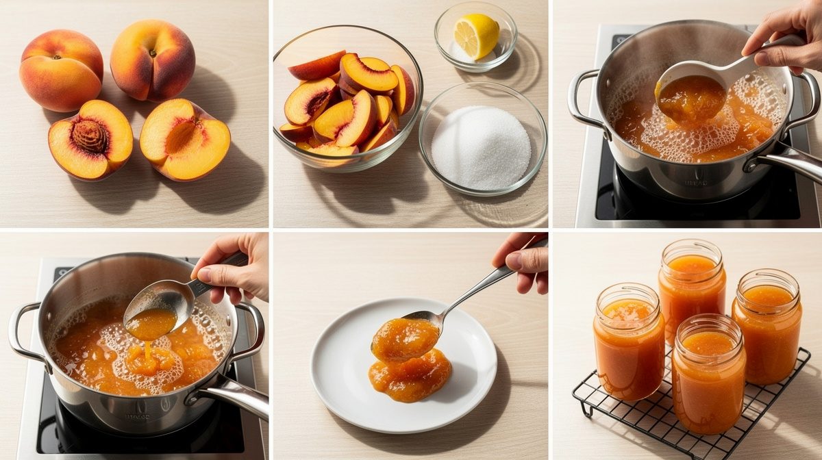 - Choisissez des pêches de saison bien mûres mais légèrement fermes pour une texture parfaite : une pêche trop mûre risque de dénaturer la consistance finale