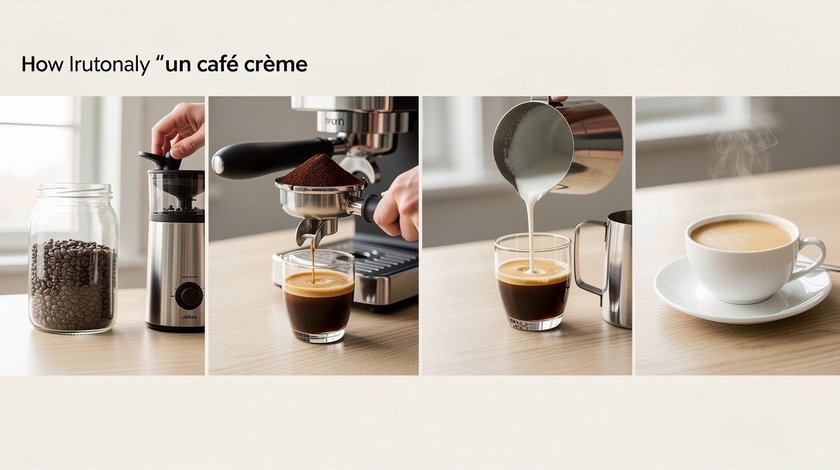Pour faire un café crème, préparez un expresso avec du café fraîchement moulu, puis faites mousser du lait entier à 60-65°C à l'aide d'une buse vapeur. Versez délicatement la mousse de lait dans l'expresso pour obtenir une boisson onctueuse et crémeuse.