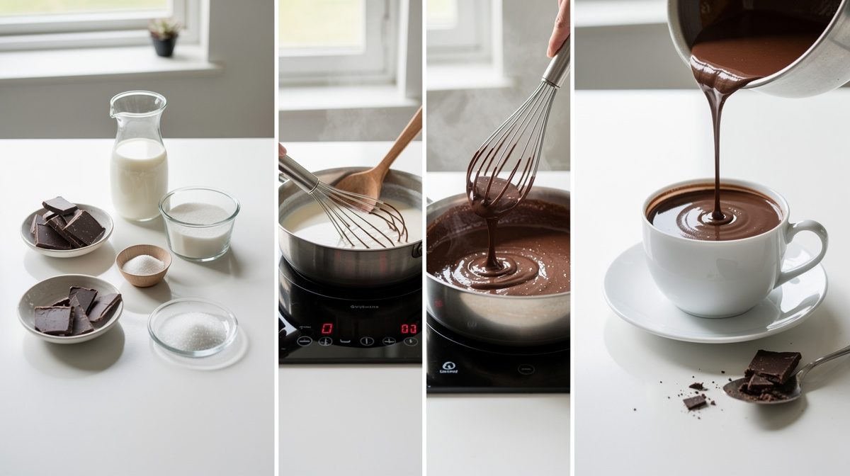 - Ne faites jamais bouillir vigoureusement le mélange : une ébullition douce préserve les arômes du chocolat et garantit une texture lisse