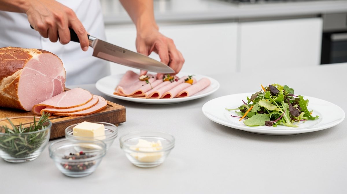 - Tranchez le jambon finement à la dernière minute pour préserver sa fraîcheur et son moelleux, et sortez-le du réfrigérateur 30 minutes avant dégustation