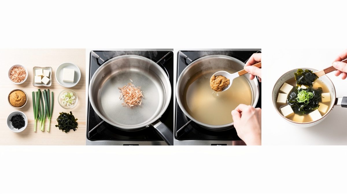 Pour faire une soupe miso, préparez un bouillon dashi, diluez 3 cuillères à soupe de pâte miso dans une louche de bouillon chaud hors du feu, puis ajoutez tofu, algues wakamé réhydratées et oignons verts. La clé est de ne jamais faire bouillir le miso pour préserver ses probiotiques.