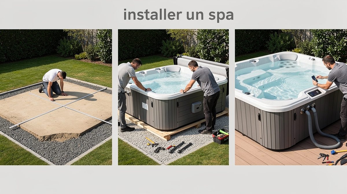 Pour installer un spa, préparez une dalle en béton d'au moins 10 cm, respectez la norme électrique NF C 15-100 avec un circuit dédié, vérifiez les règles d'urbanisme locales auprès de votre mairie et faites appel à un électricien qualifié pour le raccordement.