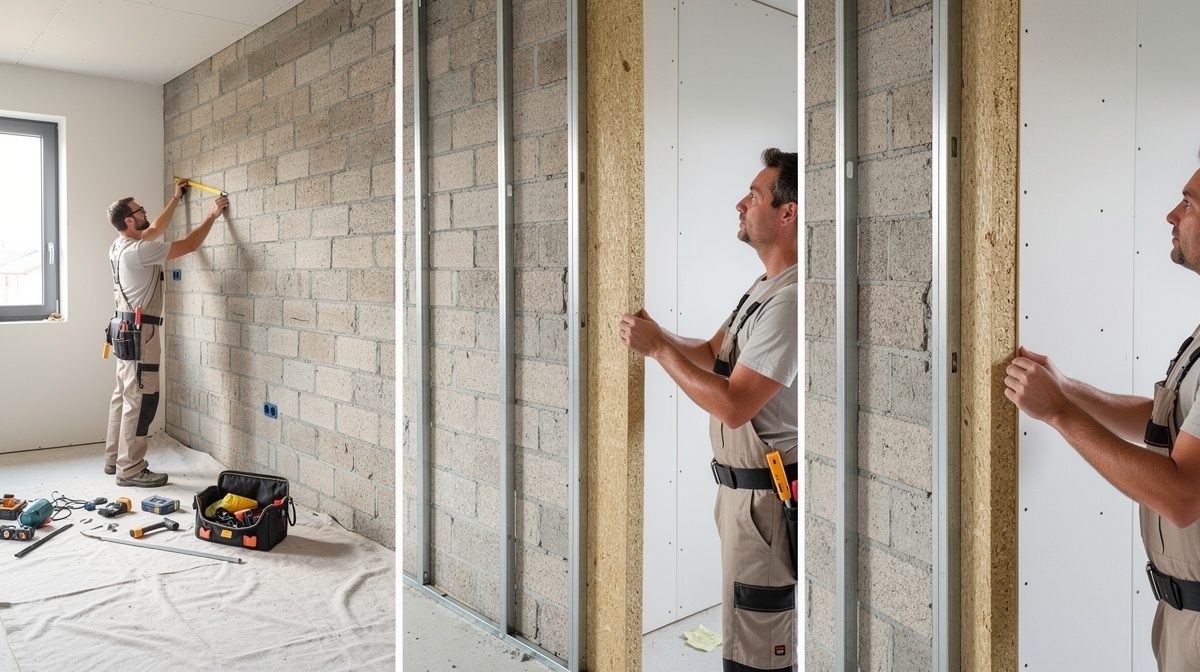 La dernière étape consiste à créer une contre-cloison qui recouvrira l'ensemble du système isolant. Fixez des plaques de plâtre (type BA13) ou des panneaux de bois sur l'ossature, par-dessus le pare-vapeur. Assurez-vous que tous les joints du pare-vapeur sont bien étanches en utilisant un adhésif spécifique. Vissez les plaques sur les tasseaux en respectant un espacement de 25 cm entre les vis. Traitez ensuite les joints entre plaques avec des bandes à joint et de l'enduit de lissage. Une fois sec, poncez légèrement et appliquez une sous-couche avant la finition décorative de votre choix : peinture, papier peint ou revêtement mural. Cette contre-cloison assure la protection mécanique de l'isolation tout en offrant un support esthétique pour votre décoration intérieure. Vérifiez l'absence de ponts thermiques au niveau des jonctions avec le plafond et le sol.