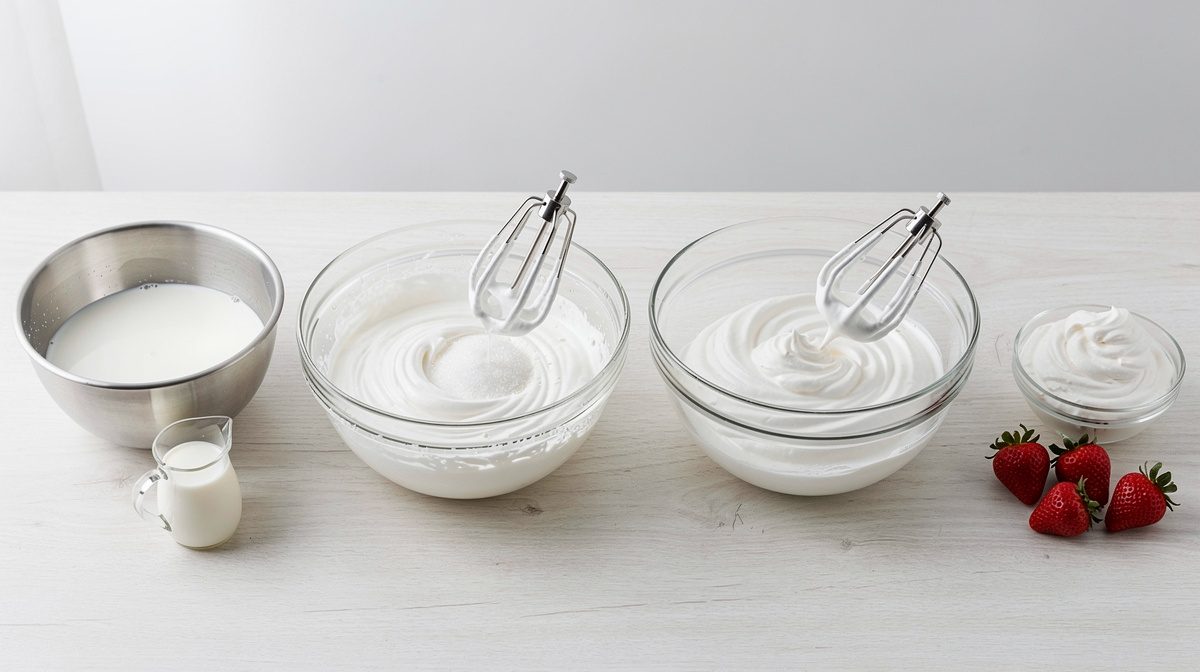 La réussite d'une chantilly commence par le choix d'une crème liquide entière contenant au minimum 30% de matière grasse. Les professionnels recommandent idéalement une crème à 35% de matière grasse pour une tenue optimale, comme la crème Excellence utilisée par les pâtissiers. Évitez absolument les crèmes allégées qui ne contiennent pas assez de matière grasse pour foisonner correctement. Vous pouvez utiliser soit de la crème fleurette fraîche, soit de la crème liquide UHT entière. Placez votre bol (de préférence en métal ou en verre), votre fouet ou les batteurs de votre robot au réfrigérateur pendant au moins 15 minutes avant de commencer. Certains pâtissiers placent même la crème au congélateur 5 à 10 minutes pour garantir qu'elle soit suffisamment froide. La température idéale de la crème se situe entre 2 et 4°C pour une montée rapide et efficace.