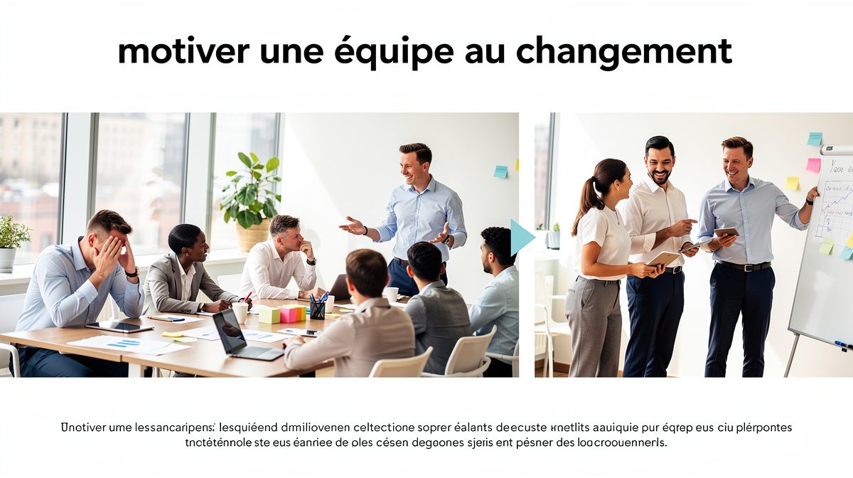 Pour motiver une équipe au changement, communiquez de manière transparente sur les raisons et bénéfices de la transformation, impliquez activement les collaborateurs dès le début du projet, et accompagnez-les avec des formations adaptées pour faciliter leur adhésion.