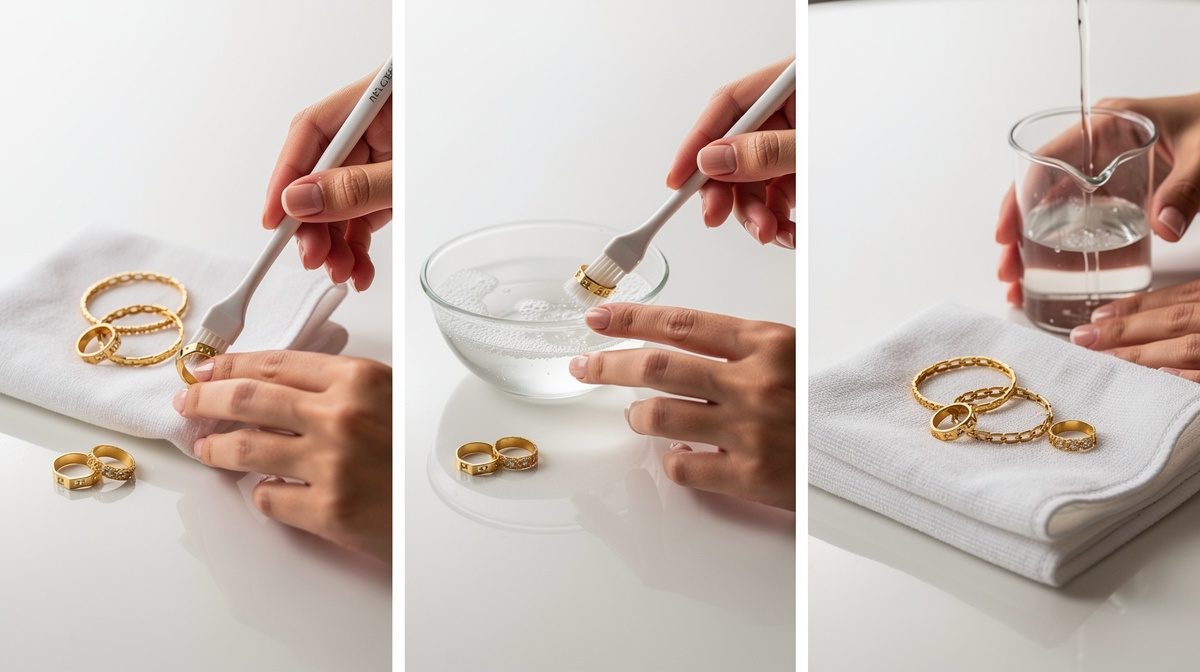 Commencez par mélanger de l'eau tiède avec quelques gouttes de savon doux, comme du savon de Marseille ou un savon liquide neutre, dans un petit récipient. Veillez à ce que l'eau ne soit pas trop chaude, car une température excessive pourrait altérer la brillance du plaquage or. Cette méthode simple et efficace convient parfaitement aux bijoux en plaqué or 18 carats, qui représentent la majorité des bijoux de qualité sur le marché. Le savon doux permet d'éliminer les saletés et les résidus de produits cosmétiques qui s'accumulent progressivement à la surface du bijou sans agresser la fine couche d'or de 3 microns qui le recouvre.