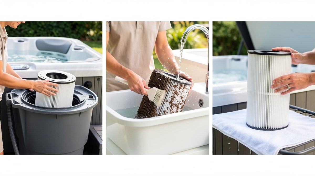 Rincez votre filtre de spa à l'eau claire toutes les 1 à 2 semaines et réalisez un nettoyage en profondeur mensuel avec un produit spécifique ou du vinaigre blanc. La durée de vie moyenne d'un filtre bien entretenu est de 6 à 12 mois.