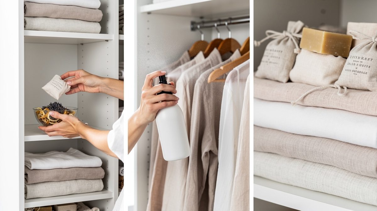 Pour parfumer durablement votre linge dans les armoires, placez des sachets de lavande, du savon de Marseille enveloppé dans du tissu, ou des accessoires en bois de cèdre entre vos vêtements. Les huiles essentielles sur des supports absorbants et les oranges piquées de clous de girofle offrent également une alternative naturelle efficace durant plusieurs semaines.