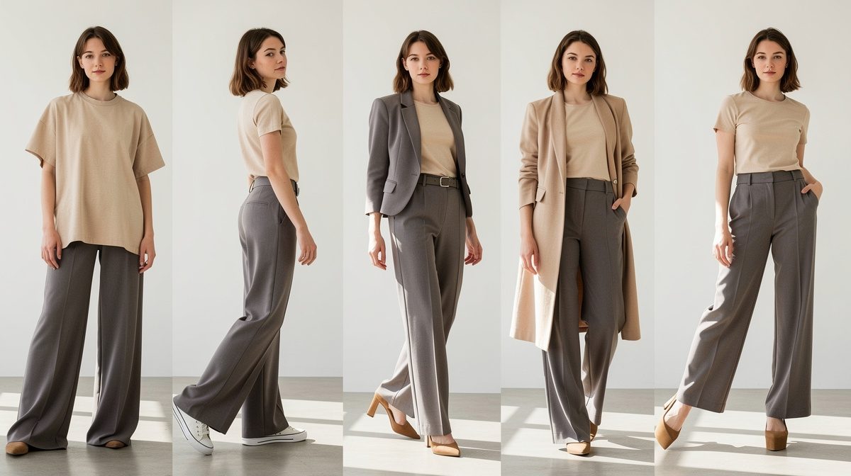 L'équilibre des proportions est essentiel : puisque le pantalon est ample, le haut doit être ajusté. Privilégiez des tops près du corps, des blouses cintrées, des chemises rentrées dans le pantalon, des bodies ou des crop-tops qui créent une harmonie visuelle. Rentrer votre haut dans le pantalon est la technique la plus efficace pour marquer la taille et allonger les jambes. Si vous portez un haut trop ample avec un pantalon large, vous risquez un look déséquilibré qui noie votre silhouette. Vous pouvez aussi opter pour des hauts courts qui s'arrêtent au niveau de la taille haute du pantalon. Les hauts avec des lignes verticales ou diagonales (encolure cache-cœur, velours côtelé) renforcent l'effet d'élancement. Pour un style plus moderne, tentez un haut légèrement oversized rentré de façon décontractée, en veillant à toujours marquer la taille.