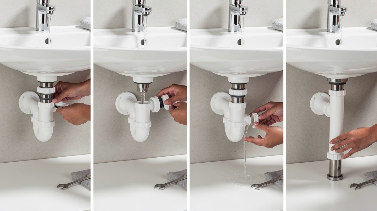 Pour raccorder un siphon à l'évacuation, vérifiez la compatibilité des diamètres (32 ou 40 mm selon l'appareil), positionnez le joint d'étanchéité, assemblez le siphon sous l'évier, raccordez-le au tuyau d'évacuation avec des joints adaptés et testez l'étanchéité en faisant couler l'eau.