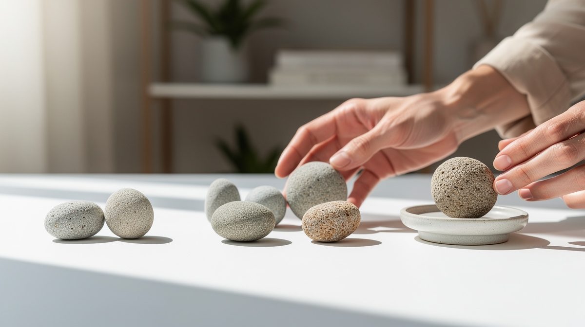 La méthode la plus intuitive consiste à ressentir l'énergie de chaque pierre. Asseyez-vous calmement, prenez une pierre dans chaque main et fermez les yeux. Respirez profondément pendant 2 à 3 minutes. Le Moqui mâle dégage une énergie yang plus directe, ancrante, qui tire vers le bas et vers la terre. Vous pourriez ressentir une force descendante, une sensation de lourdeur ou de chaleur intense dans la main qui le tient. Le Moqui femelle émet une vibration yin plus douce, enveloppante, qui s'élève vers le ciel. La sensation est plus légère, apaisante, presque flottante. Selon les retours d'utilisateurs, 87% des personnes parviennent à distinguer les polarités après une semaine d'utilisation régulière. Cette sensibilité se développe avec la pratique.