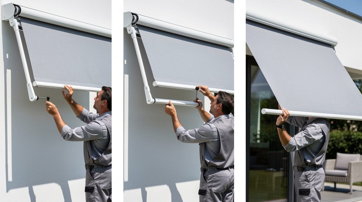 Une fois les ajustements effectués, testez plusieurs fois l'ouverture et la fermeture complètes du store électrique. Le store doit se déployer et se replier de manière fluide, sans à-coups ni bruits anormaux. Observez attentivement si la barre de charge reste horizontale pendant toute la manœuvre et si la toile se tend uniformément. Vérifiez également que les bras se replient correctement dans le coffre (pour les modèles coffre intégral ou semi-coffre) sans buter. Si vous constatez un désalignement ou une tension irrégulière, procédez à de nouveaux ajustements mineurs jusqu'à obtenir un fonctionnement optimal. Pour les stores équipés de capteurs de vent ou de soleil, vérifiez que le réglage n'interfère pas avec leur fonctionnement automatique.