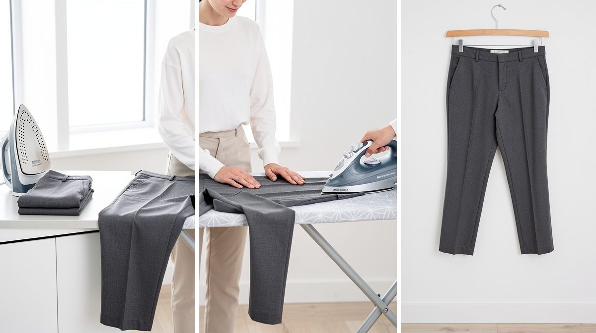 Pour repasser un pantalon, commencez par vérifier l'étiquette pour régler la température adaptée (110-200°C selon le tissu), puis repassez dans l'ordre : poches et ceinture d'abord, puis les jambes en les alignant soigneusement pour éviter les faux plis.