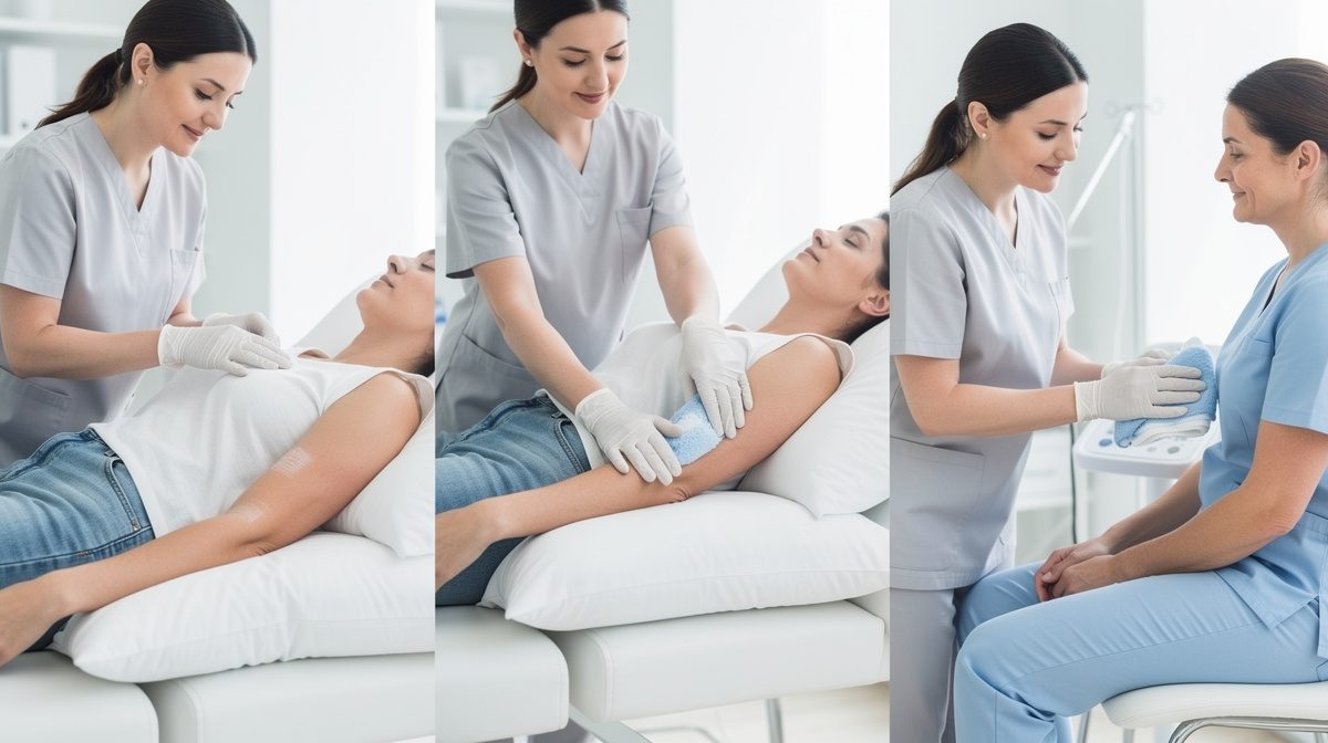 La cryothérapie constitue la première ligne de défense contre l'œdème post-opératoire. Dès la sortie de la salle d'opération, appliquez une poche de glace enveloppée dans une serviette sur la zone opérée pendant 15 à 20 minutes toutes les heures durant les 48 premières heures. Le gonflement atteint généralement son maximum au bout de 48 heures selon les recommandations médicales. Le froid provoque une vasoconstriction qui limite l'accumulation de liquide interstitiel et réduit considérablement l'inflammation. Vous pouvez utiliser des poches de glace pharmaceutiques, des petits pois congelés ou des compresses réfrigérantes. Attention à ne jamais appliquer la glace directement sur la peau pour éviter les brûlures. Cette méthode agit également comme un analgésique naturel en réduisant la douleur ressentie.