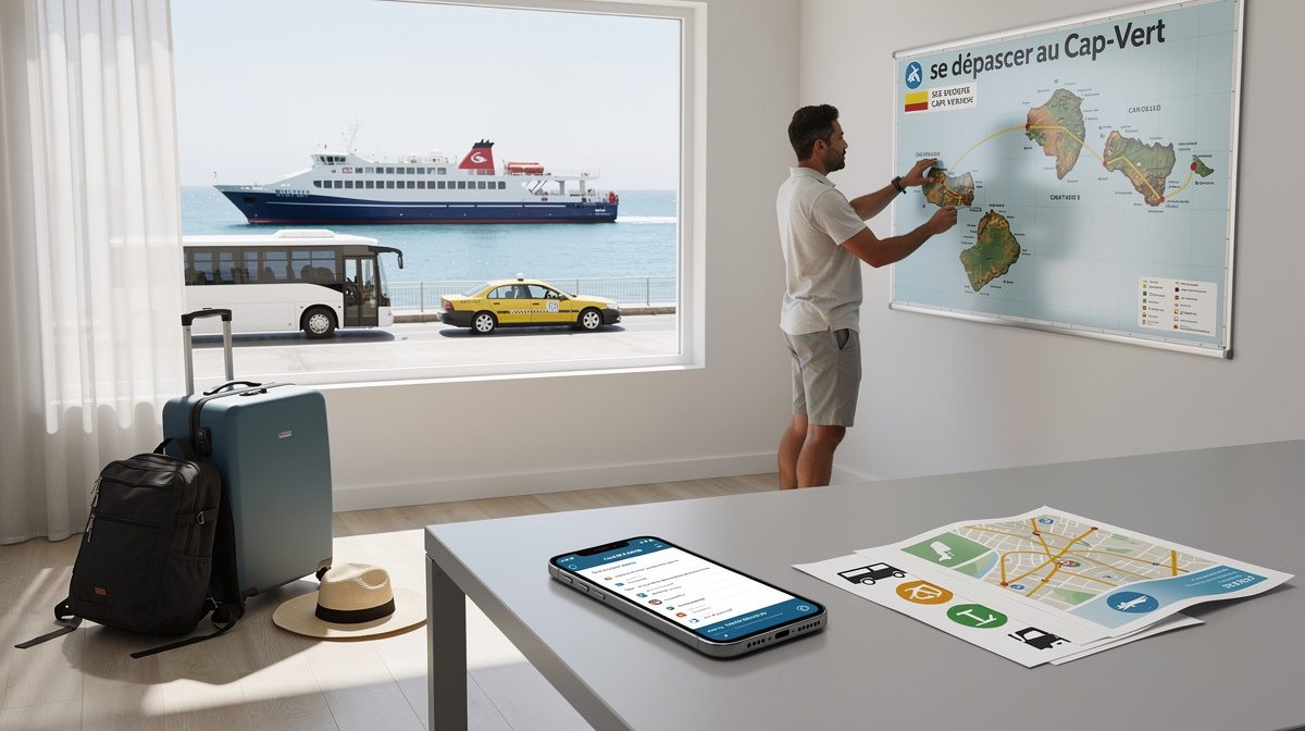 L'archipel propose deux moyens principaux pour voyager entre les îles. Les vols intérieurs avec Cabo Verde Airlines relient la plupart des îles en 20 à 60 minutes, avec des tarifs à partir de 50 euros l'aller simple. La compagnie dessert toutes les îles habitées sauf Brava et Santo Antão qui n'ont pas d'aéroport. Pour les petits budgets, CV Interilhas exploite depuis 2019 une flotte de 12 bateaux assurant les liaisons maritimes. Les ferries sont meilleur marché mais les traversées sont longues et les retards fréquents. La ligne la plus fréquentée relie São Vicente à Santo Antão avec 14 départs hebdomadaires pour environ 15 euros, avec une traversée d'une heure. Attention : Santo Antão et Brava ne sont accessibles que par ferry, depuis São Vicente et Fogo respectivement.
