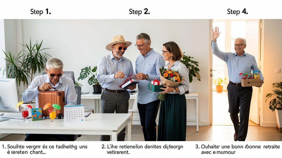 Un message réussi pour un départ à la retraite combine habilement humour et sincérité. Commencez par une touche drôle pour détendre l'atmosphère, puis glissez un mot plus personnel pour exprimer votre reconnaissance. Par exemple : "Aujourd'hui, nous perdons un collègue, mais nous gagnons une excuse pour venir boire l'apéro chez toi ! Tu nous manqueras, mais on est vraiment heureux pour toi". Cette approche permet de garder un ton léger tout en montrant que vous appréciez sincèrement la personne. Évitez de charger votre texte avec trop de blagues : un ou deux bons traits d'humour suffisent. L'équilibre entre reconnaissance, optimisme et humour crée un message mémorable. N'oubliez pas que le départ à la retraite est un tournant important, vos mots doivent être choisis avec soin pour marquer positivement ce moment.