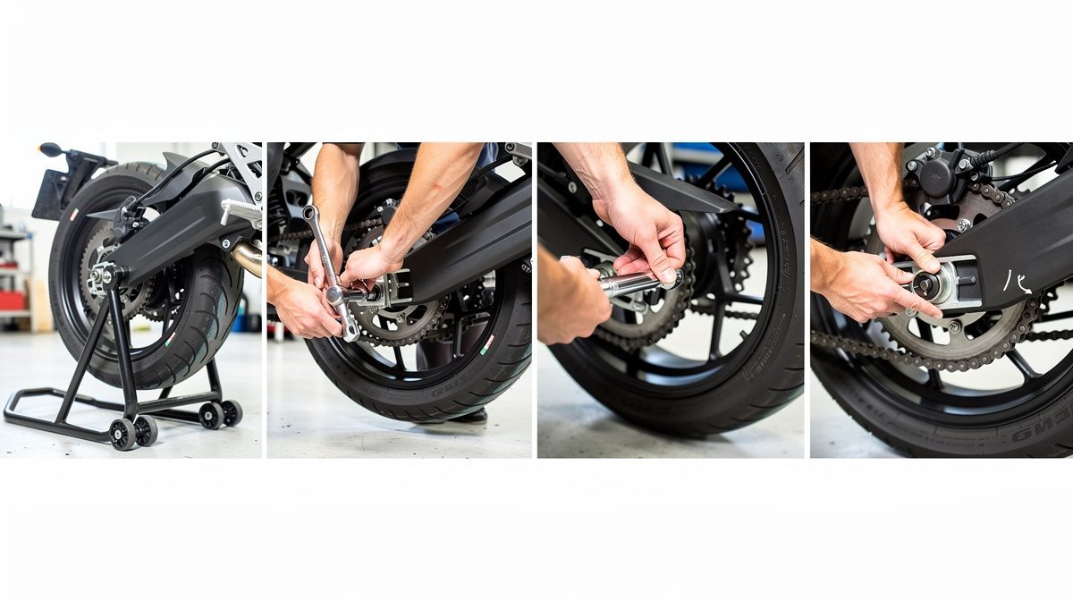 Pour tendre une chaîne de moto, placez la moto sur béquille, mesurez le débattement de la chaîne (25 à 35 mm selon les modèles), desserrez l'axe de roue arrière, ajustez progressivement les vis de tension de chaque côté par quart de tour, puis resserrez l'axe au couple recommandé avec une clé dynamométrique.