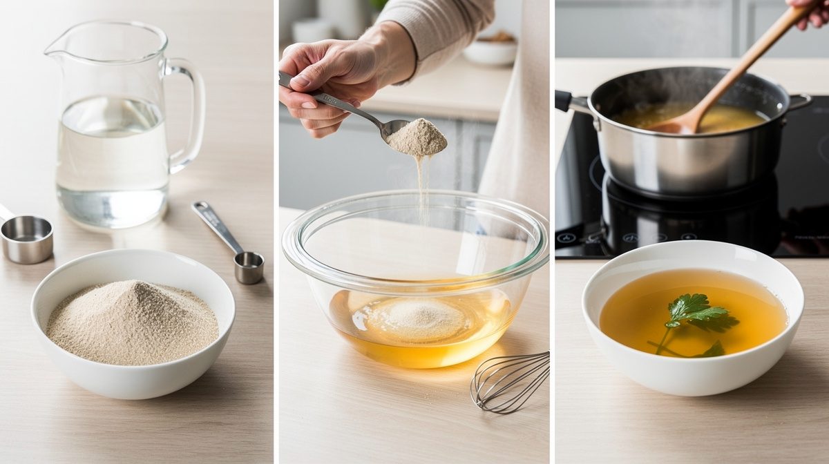 Verser la poudre directement dans un liquide chaud crée systématiquement des agglomérats impossibles à dissoudre. Délayer d'abord dans un peu d'eau froide permet d'hydrater progressivement les particules déshydratées et garantit une texture finale parfaitement lisse et homogène dans vos préparations.