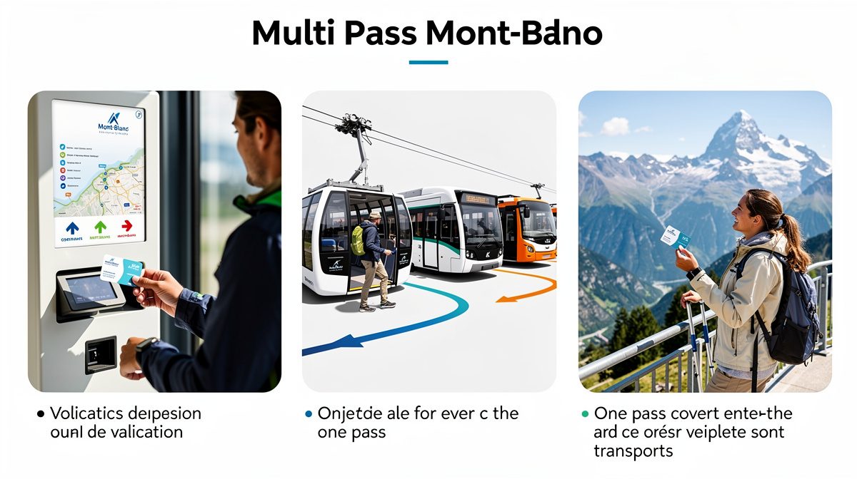 Le Multi Pass Mont-Blanc fonctionne comme un forfait unique donnant accès illimité aux remontées mécaniques, trains et sites touristiques de la Compagnie du Mont-Blanc dans la vallée de Chamonix. Il nécessite un badge RFID à 3 euros à scanner aux tourniquets et une réservation obligatoire pour l'Aiguille du Midi.