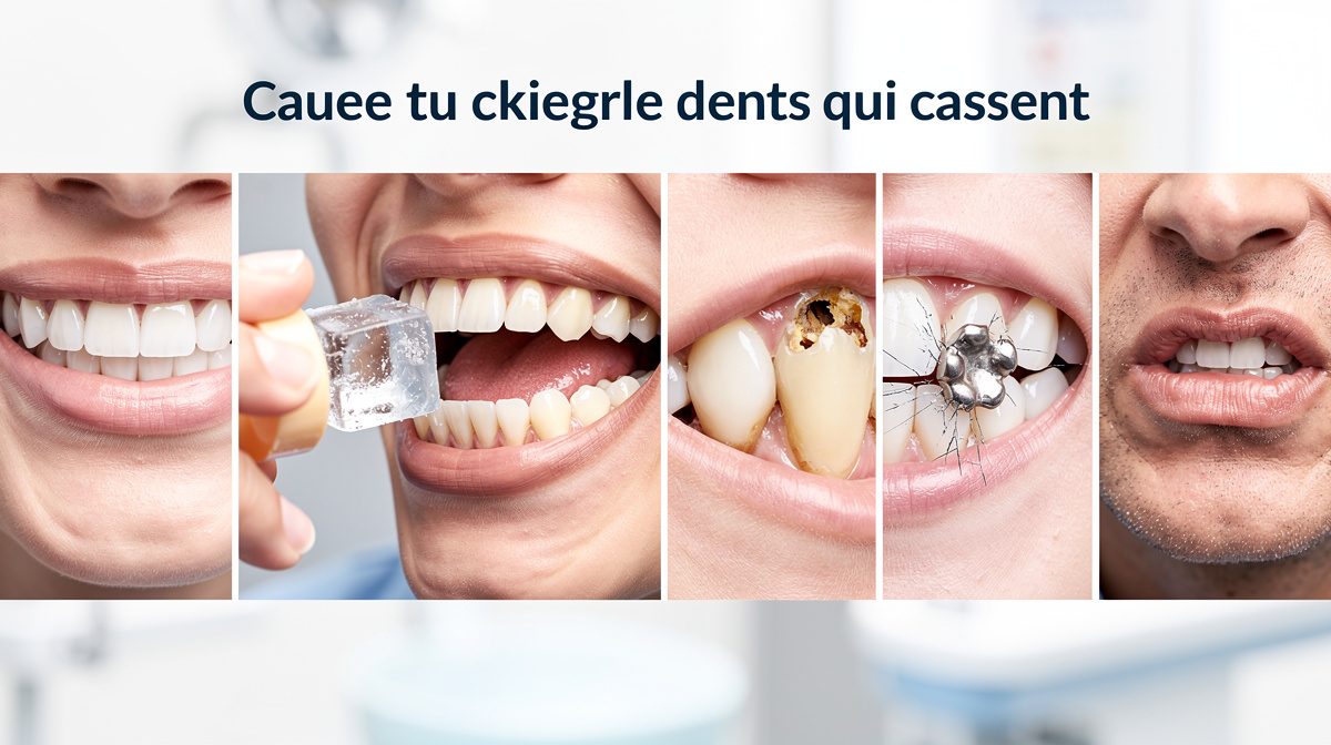 Les dents cassent principalement à cause de caries non traitées, de traumatismes physiques, du bruxisme, de dents dévitalisées fragilisées ou d'une mauvaise hygiène dentaire. Une consultation rapide chez le dentiste dans les 24 heures est indispensable pour éviter les complications.