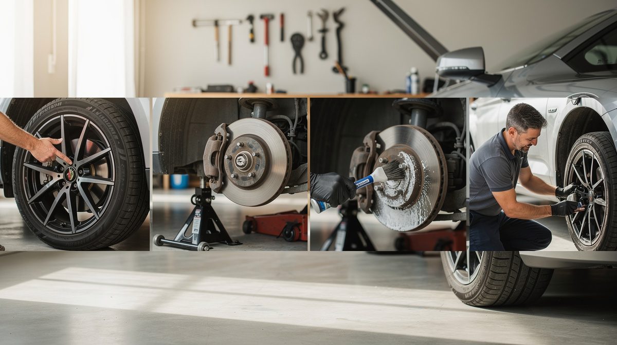 Dans 92% des diagnostics, un essai routier est réalisé pour localiser la source du problème. Identifiez d'abord la roue concernée en roulant à faible vitesse et en freinant progressivement. Inspectez visuellement l'épaisseur des plaquettes à travers la jante : une plaquette est considérée comme usée si la garniture est inférieure à 3 mm, sachant qu'une plaquette neuve mesure environ 15 mm. Vérifiez le témoin lumineux sur votre tableau de bord : un cercle entouré de parenthèses en pointillés indique une usure excessive des plaquettes. Examinez les disques de frein pour détecter des rayures, des stries ou une coloration bleue-violette caractéristique d'une surchauffe. Contrôlez le niveau de liquide de frein qui peut baisser en cas d'usure des plaquettes. Si vous constatez des vibrations dans la pédale ou une pédale molle, le problème peut être plus grave et nécessiter une inspection complète du système hydraulique.