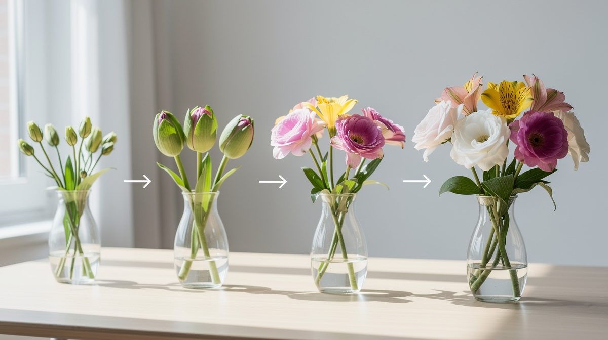 - Commencez par des fleurs à floraison rapide (8-24h) avant de vous lancer dans des projets plus longs