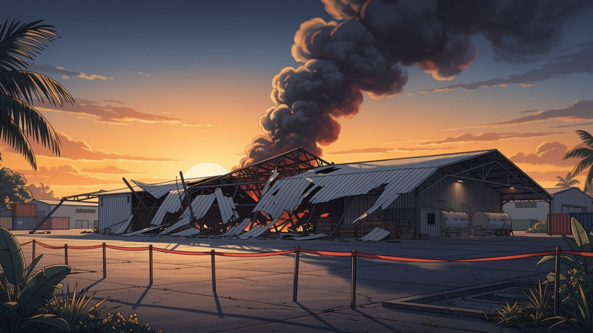Le feu s’est déclenché le samedi 25 avril 2026 vers 21h20 dans l’entrepôt de la société RDT Logistic, situé au 151 route de Cambaie, dans la zone industrielle de Saint-Paul. Le bâtiment, d’une superficie de 5800 m², contenait des stocks d’huiles alimentaires, de plastiques, de textiles, d’alcool, de batteries lithium et d’aérosols, selon Réunion La 1ère.