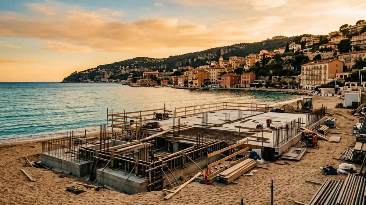 Le front de mer de Juan-les-Pins ressemble encore à un chantier. Grues, fondations coulées, démolitions en cours : la requalification des plages naturelles lancée en décembre 2023 pour trois ans n’est pas terminée. Pourtant, les exploitants de plage ne peuvent pas attendre. Selon France 3 Côte d’Azur, les plagistes s’activent depuis mars 2026 pour installer leurs nouvelles terrasses et être opérationnels avant l’arrivée des premiers touristes.